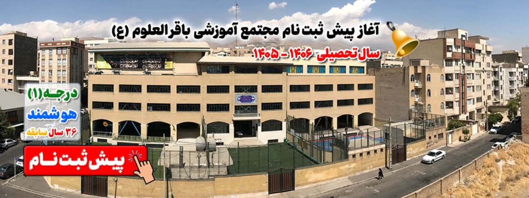 مجتمع پسرانه آموزشی فرهنگی باقرالعلوم (ع) برای سال تحصیلی ۱۴۰۶ – ۱۴۰۵ ثبتنام میکند.